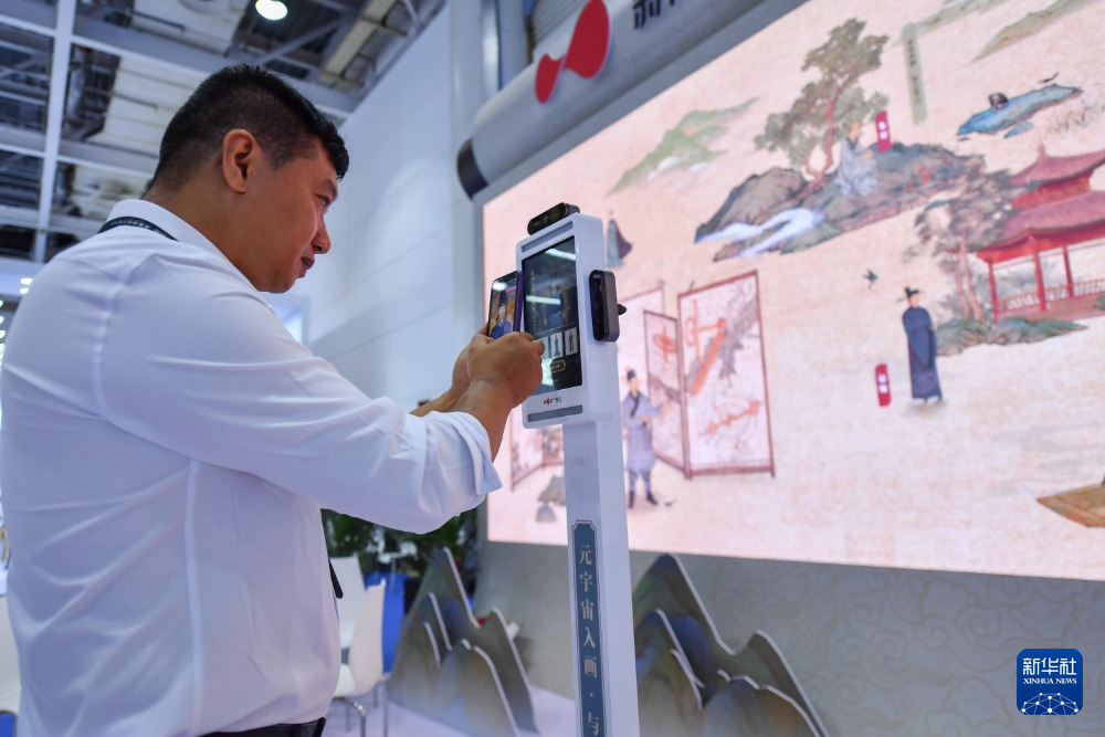 7月12日,参观者在中国新媒体技术展上体验文化数字化操作系统。 新华社记者 陈泽国 摄