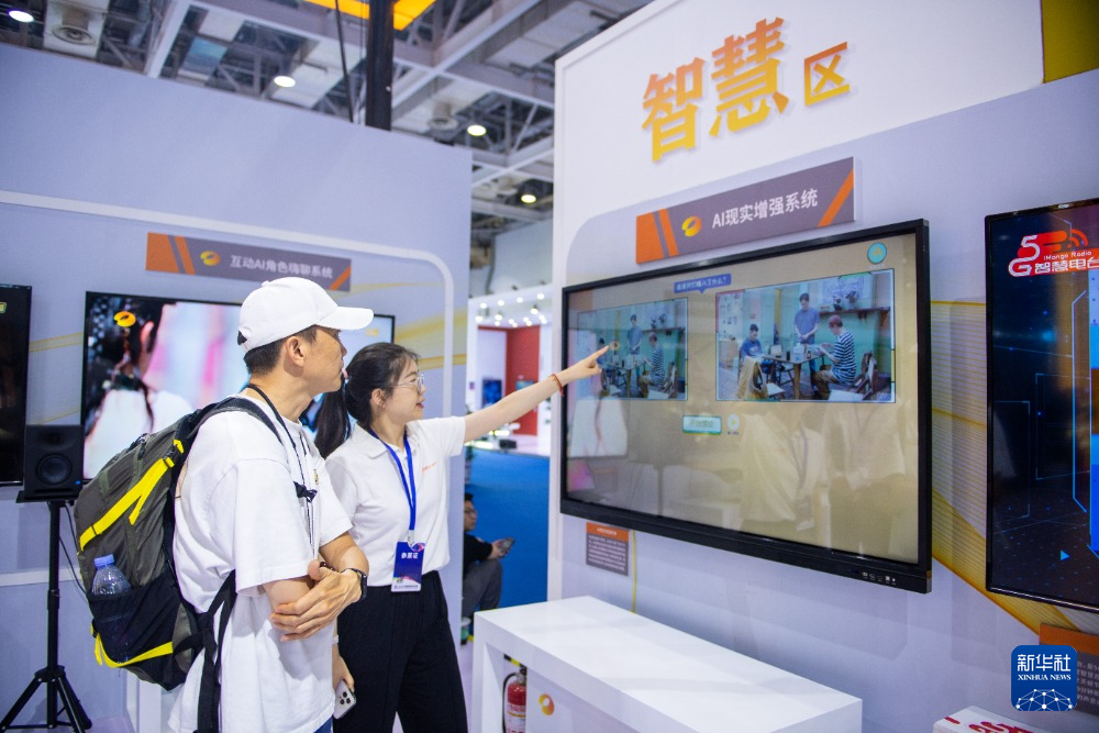 这是7月12日拍摄的2023中国新媒体大会中国新媒体技术展现场。新华社记者 陈泽国 摄
