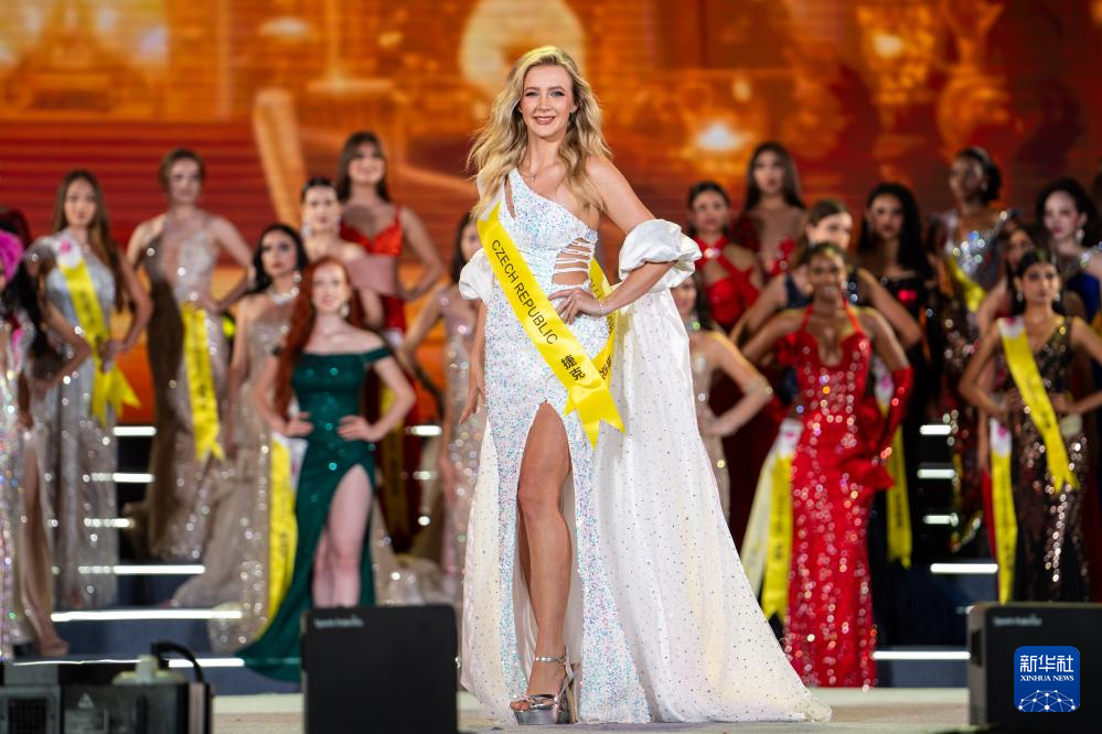 10月2日,捷克选手特雷莎·朗格罗娃在进行晚礼服走秀,最终她获得了本届大赛季军。新华社记者 陈思汗 摄pagebreak