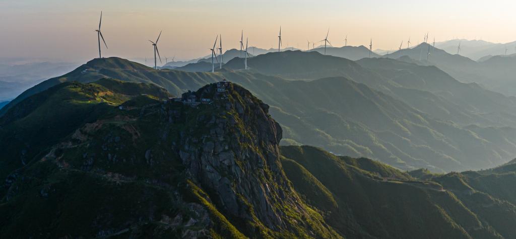 华电新能湖南分公司仰天湖风电场。叶片翩跹,转动的风车在原野上奏响乐章。(肖胜男 摄