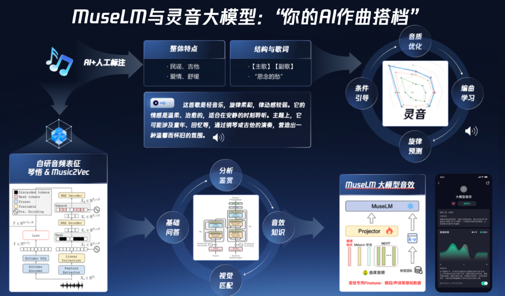 音频广泛应用于新闻播报、播客、短视频、有声书等内容场景,随着内容形式的持续丰富与传播效率的不断提升,音频创作也在向更加智能、高效、专业的方向演进。“音频超能力”集成了TME天琴实验室的核心音频AI能力,包括“琴语AI播客”“灵音大模型”“MuseLM音乐大语言模型”和“琴语有声书”模块,涵盖了智能播客生成、音乐内容理解与生成、文本转音频等场景。