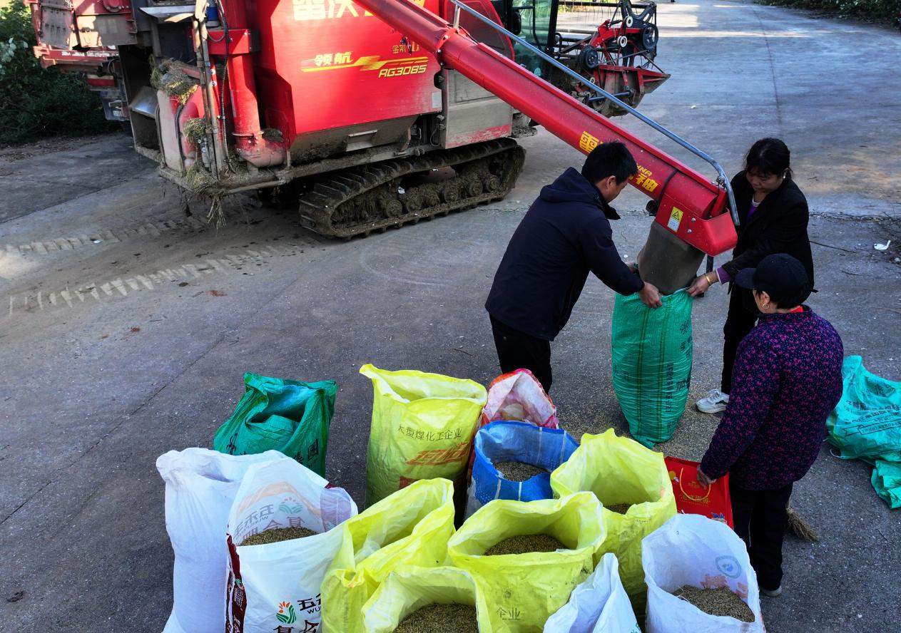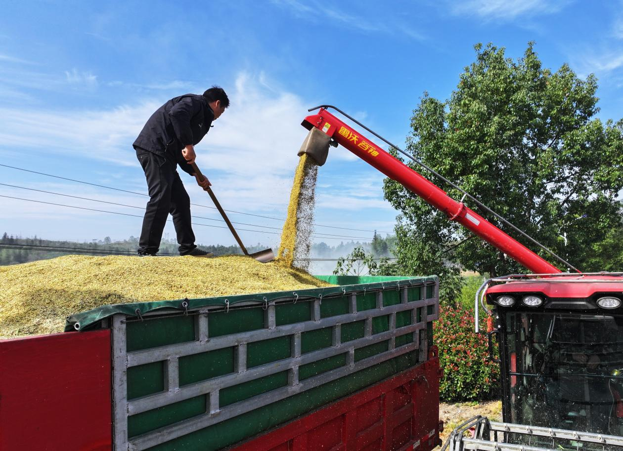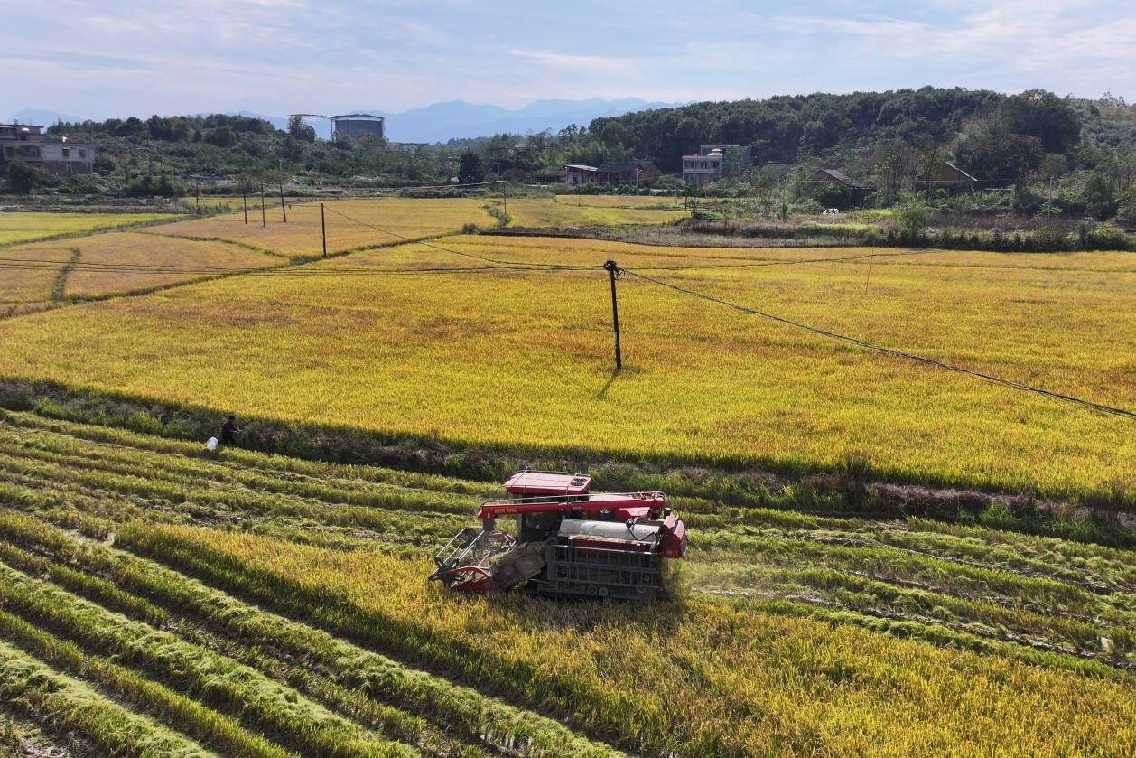 近日,湖南省常宁市晚稻收割进入收官阶段。连日来,各地农户正抢抓晴好天气,加紧收割成熟晚稻,确保颗粒归仓。(钱辉)pagebreak