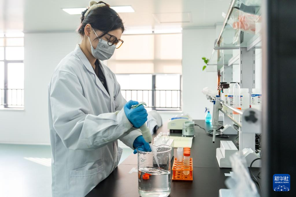 12月1日,在津市高新区的湖南利尔生物科技有限公司发酵实验室,工作人员进行菌种发酵实验。新华社记者 陈思汗 摄pagebreak