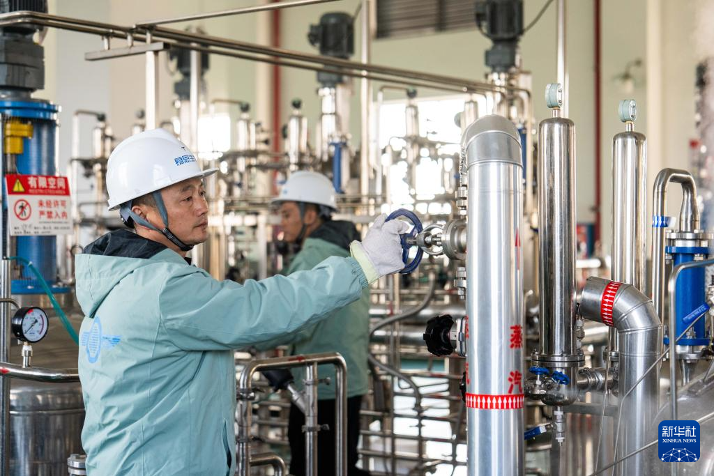 12月1日,在津市高新区的湖南慕恩生物科技有限公司液体发酵车间,工作人员进行种子罐蒸汽消毒作业。新华社记者 陈思汗 摄pagebreak