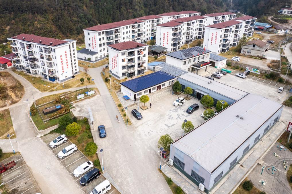 这是12月11日在桃源县西安镇集镇安置小区拍摄的常德市金磁电器有限公司乡村车间(无人机照片)。新华社记者 陈思汗 摄pagebreak