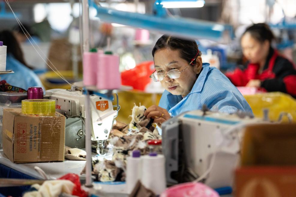 12月11日,在位于桃源县青林回族维吾尔族乡督粮冲村的常德市双阅玩具有限公司乡村车间,工人在制作布艺玩具。新华社记者 陈思汗 摄pagebreak