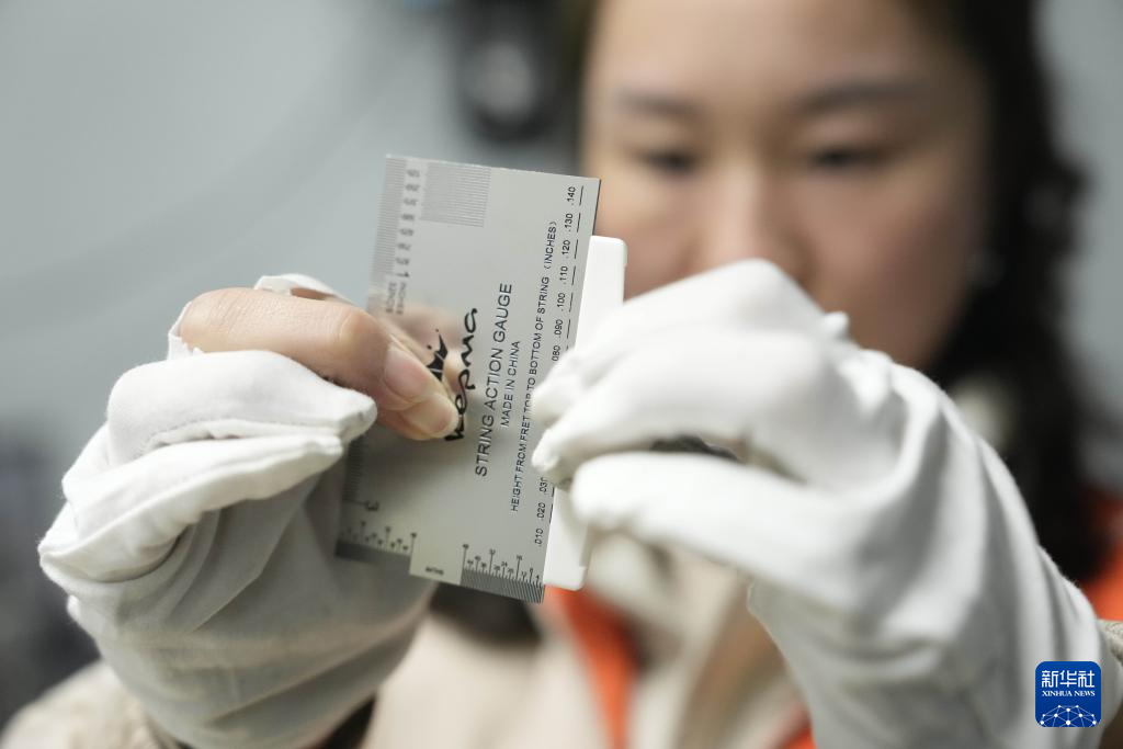 1月7日,工人在位于湖南宁乡的湖南省卡玛乐器制造有限公司生产车间检查吉他部件。新华社记者 薛宇舸 摄pagebreak