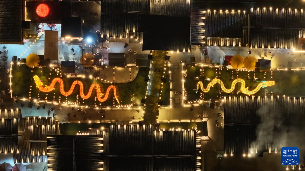 这是1月9日拍摄的南岳里夜景(无人机照片)。
