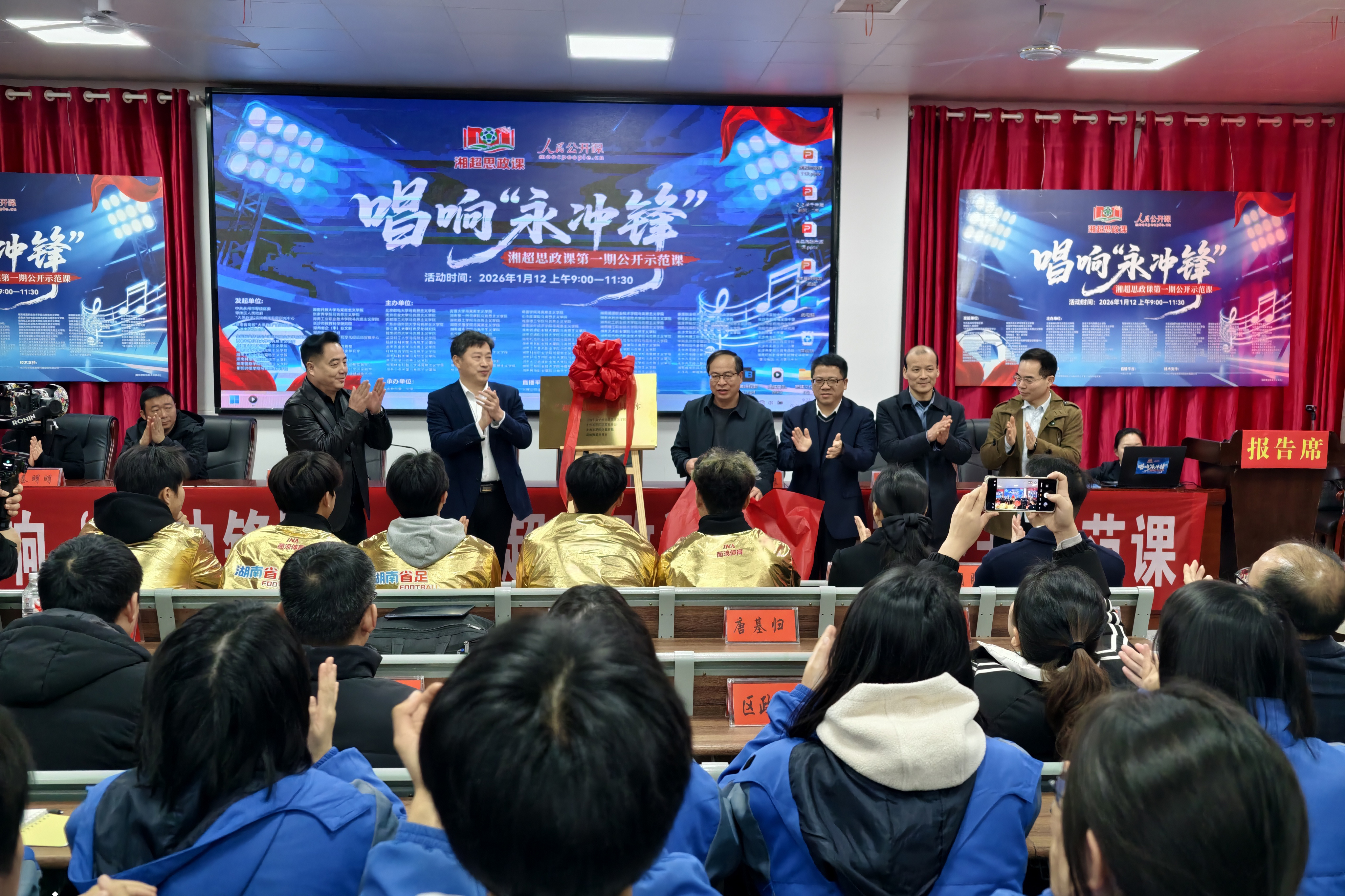 永州市零陵区是全省中小学思政课改革创新示范区,始终以“红色文化进校园”等特色举措深耕思政教育土壤,相关案例已入选“湖南基层改革探索100例”。活动现场,“湘超思政课”共同体签约暨揭牌仪式举行,标志着由宣传、教育、高校、行业单位、媒体等多方参与的思政育人协同机制正式落地。