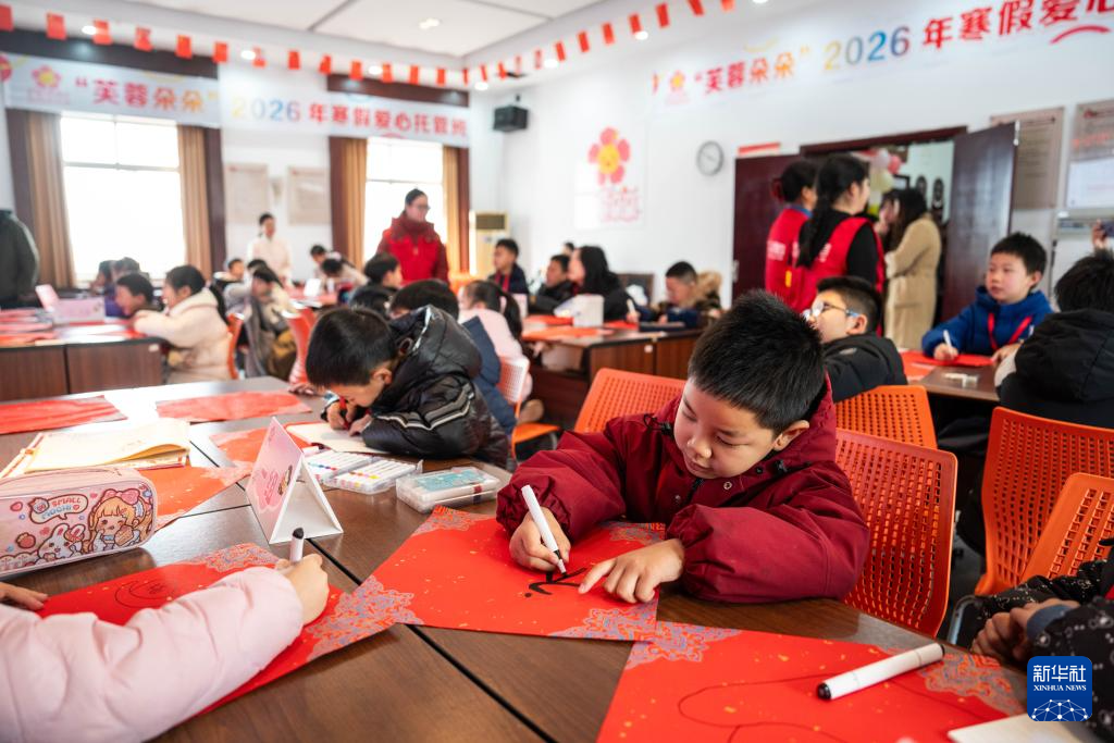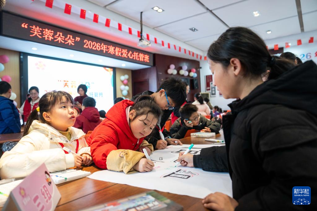 2月1日,在芙蓉区识字里社区服务中心,学生们在课堂上画画。新华社记者 陈思汗 摄pagebreak