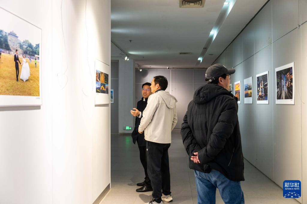 2月6日,市民在湖南省文化馆拍摄展出的摄影作品。新华社记者 陈思汗 摄
