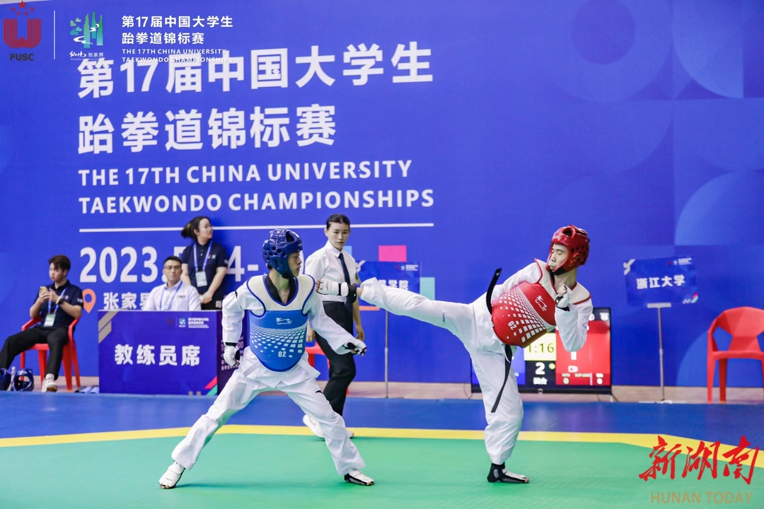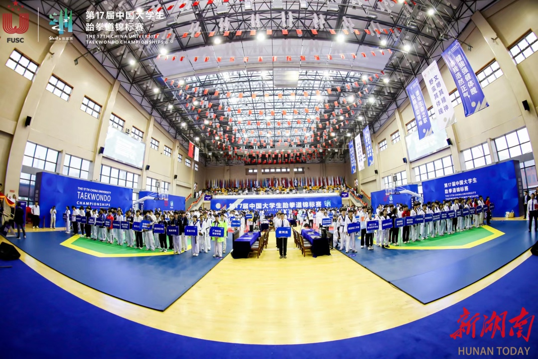 新湖南客户端5月26日讯(记者 胡旻 实习生 彭骏捷 文湘玥)5月26日上午,第17届中国大学生跆拳道锦标赛在张家界市第一中学体育馆激情开赛。大赛共吸引来自浙江大学、厦门大学、湖南大学、湖南师范大学、中南林业科技大学等全国185所高校、1500余名学生运动员和教练齐聚仙境张家界,共同见证一场精彩纷呈的跆拳道盛会。