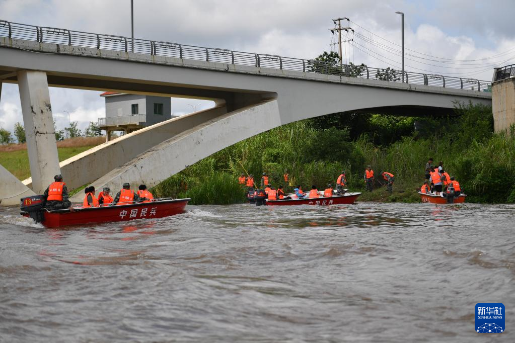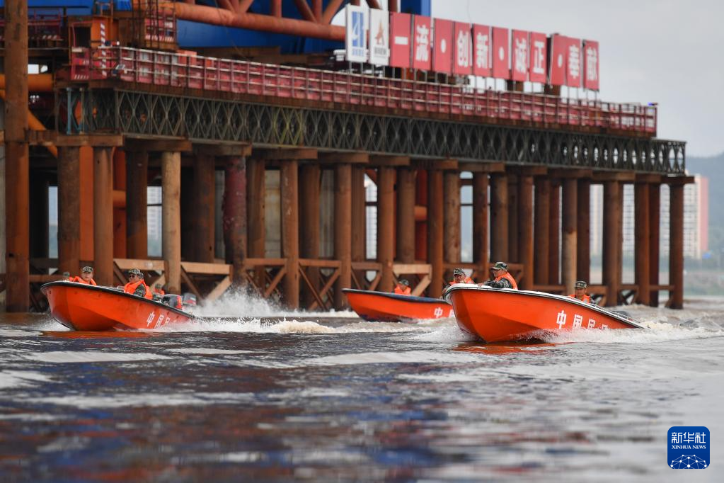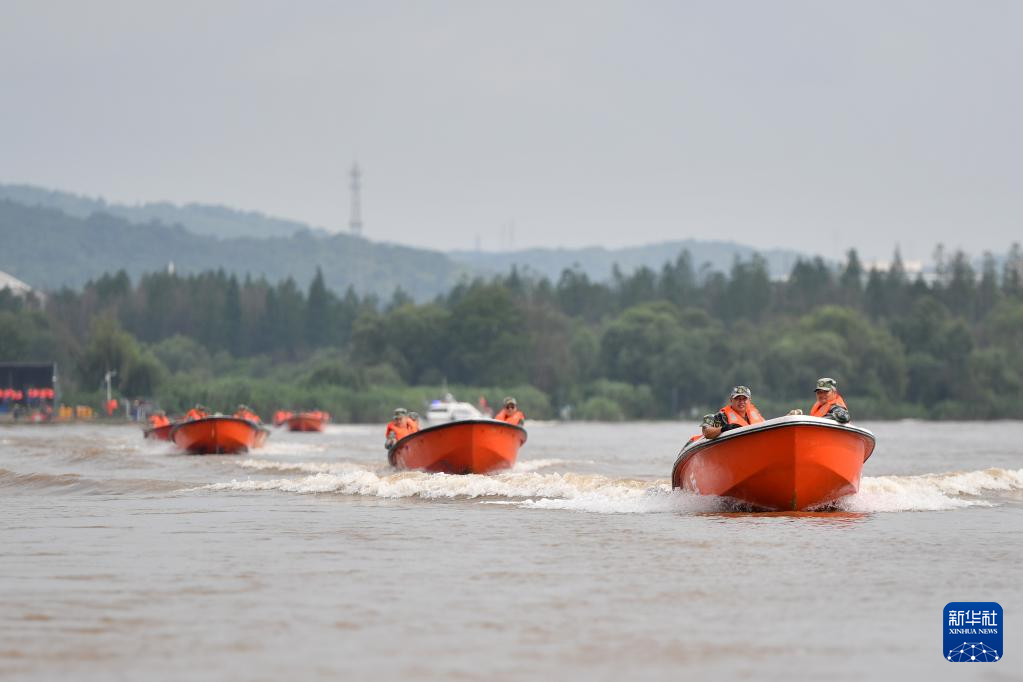6月26日,防汛抢险应急演练人员驾驶冲锋舟巡逻。