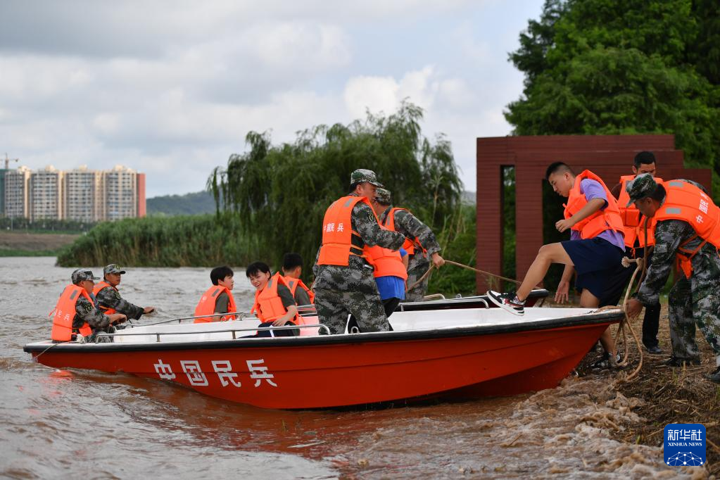 6月26日,防汛抢险应急演练人员驾驶冲锋舟转移“被困群众”。