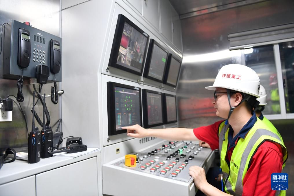 8月15日,在湖南平江抽水蓄能电站引水隧洞建设现场,工作人员在控制室内查看“天岳号”掘进机作业情况。