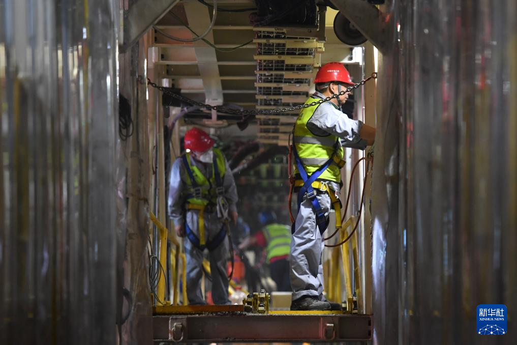 8月15日,在湖南平江抽水蓄能电站引水隧洞建设现场,工作人员查看“天岳号”掘进机作业情况。