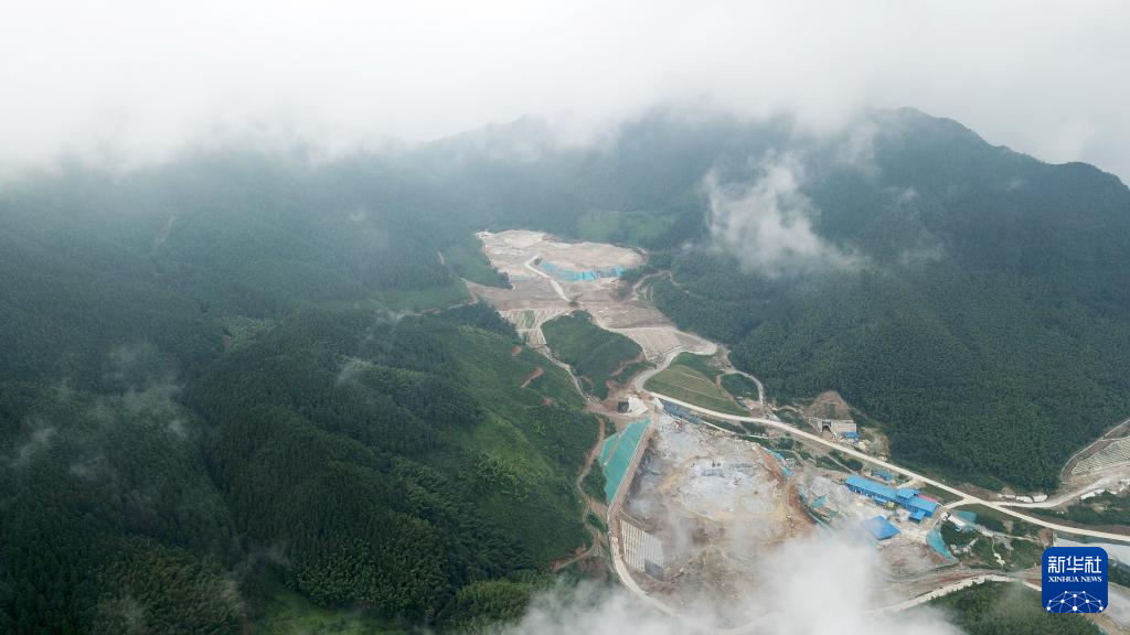 这是8月15日拍摄的湖南平江抽水蓄能电站建设现场(无人机照片)。