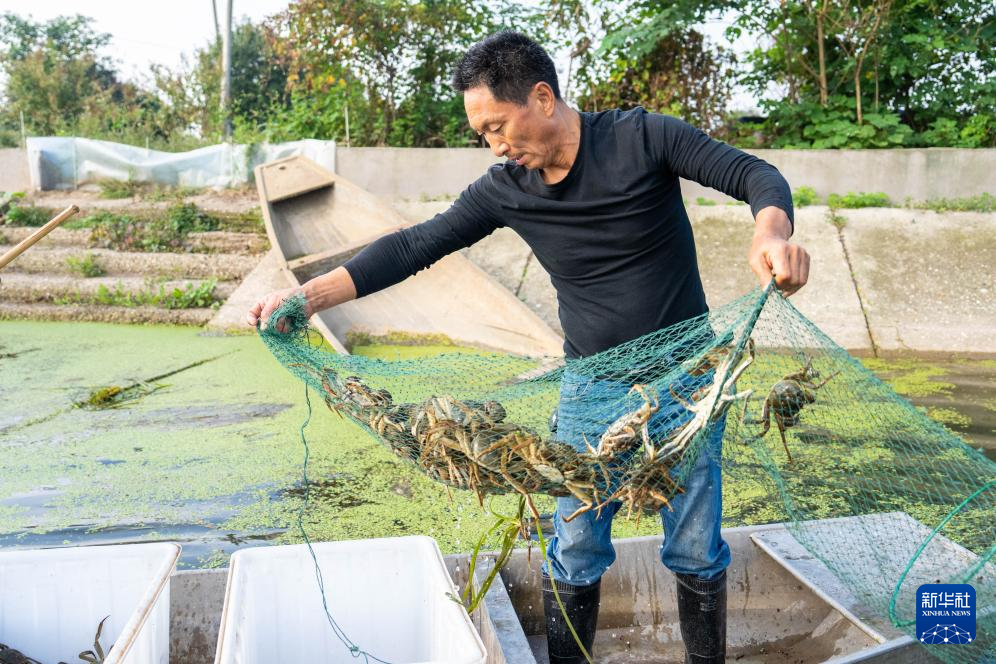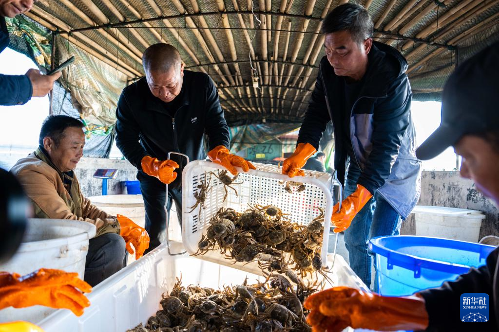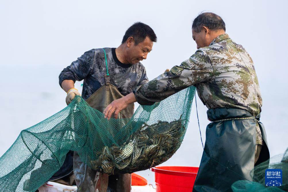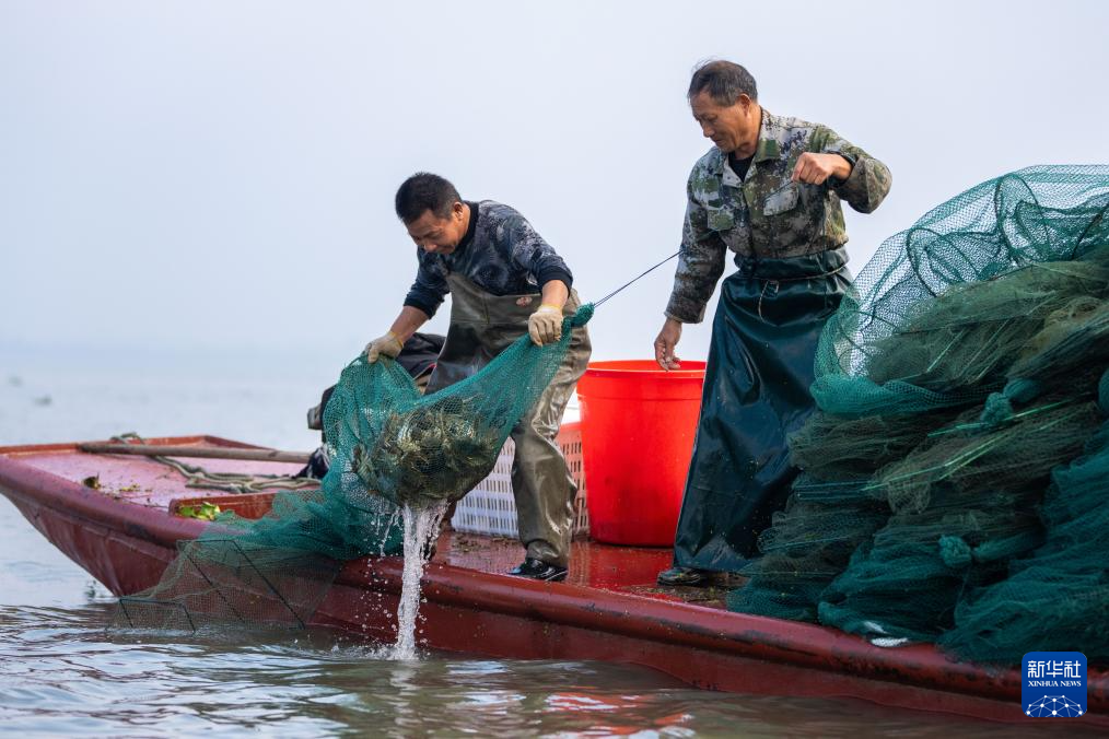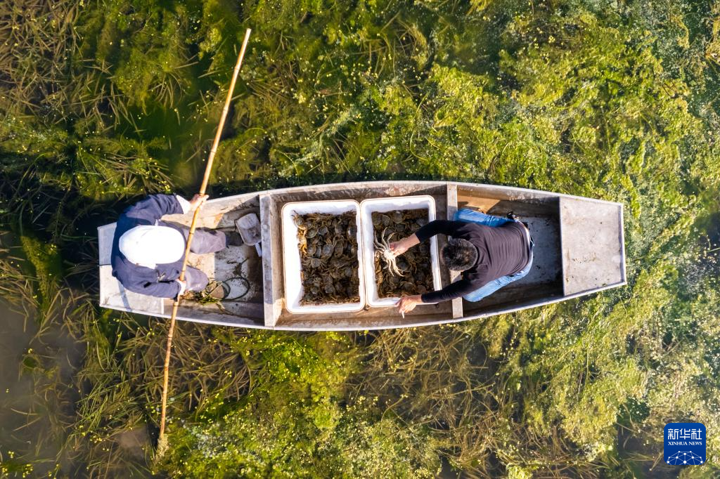 近日,洞庭湖养殖的螃蟹迎来了丰收季,湖南省益阳市大通湖管理区的蟹农正抓紧捕捞,供应各地市场。大通湖是洞庭湖的重要组成部分,水产资源丰富。