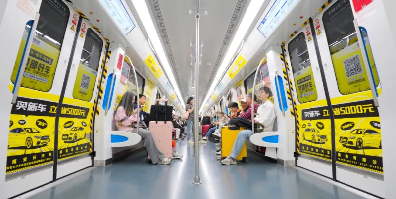 据介绍,这台由湖南天闻地铁传媒和买部好车共同打造的主题列车,由6节车厢组成,通过车厢玻璃贴、门贴、框架等组合而成。