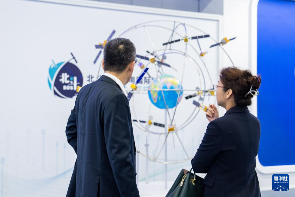 10月26日,在株洲国际会展中心,观众在观看北斗系统组网模型。新华社记者 陈思汗 摄