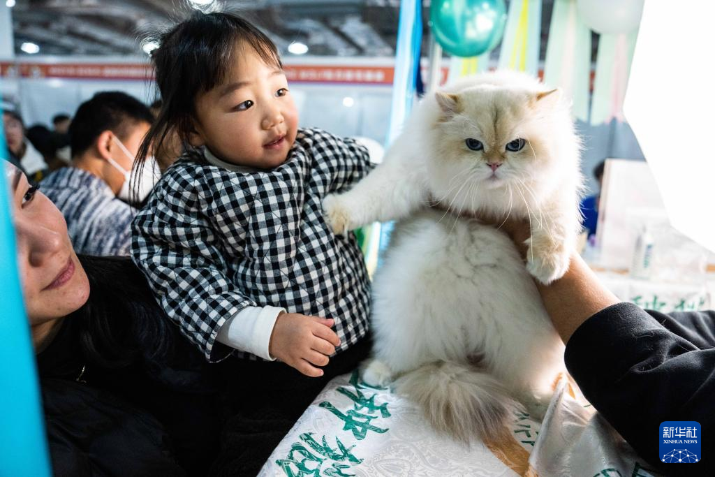 12月2日,在长沙红星国际会展中心,观众在逗猫。