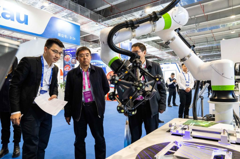 12月8日,在株洲国际会展中心,观众在了解一款滚刀装置。 新华社记者 陈思汗 摄