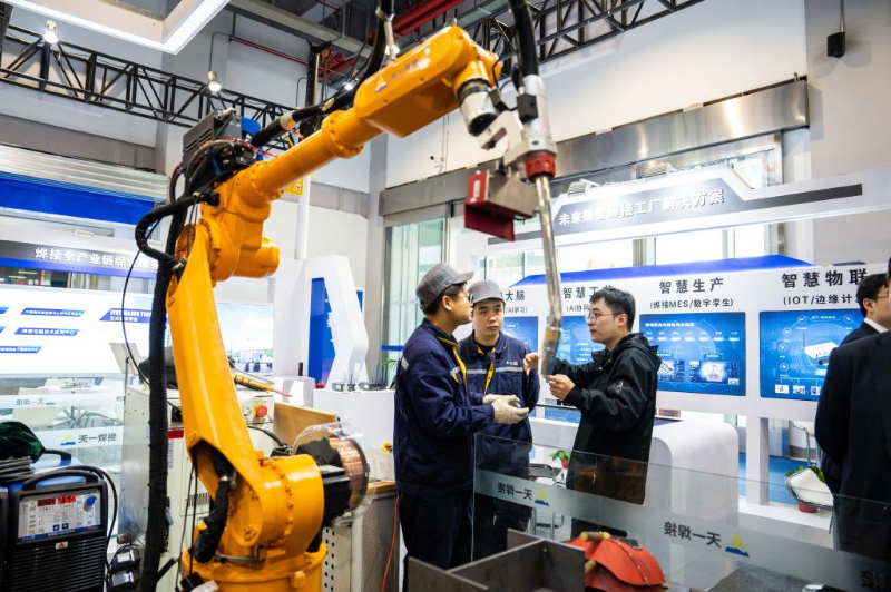 12月8日,在株洲国际会展中心,观众在了解一款智能焊接设备。 新华社记者 陈思汗 摄
