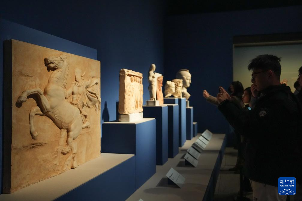 1月3日,观众在湖南博物院参观“神话国度 璀璨爱琴海——古希腊文明史诗”展。新华社记者 薛宇舸 摄