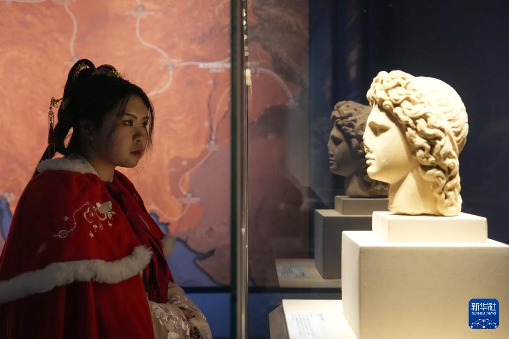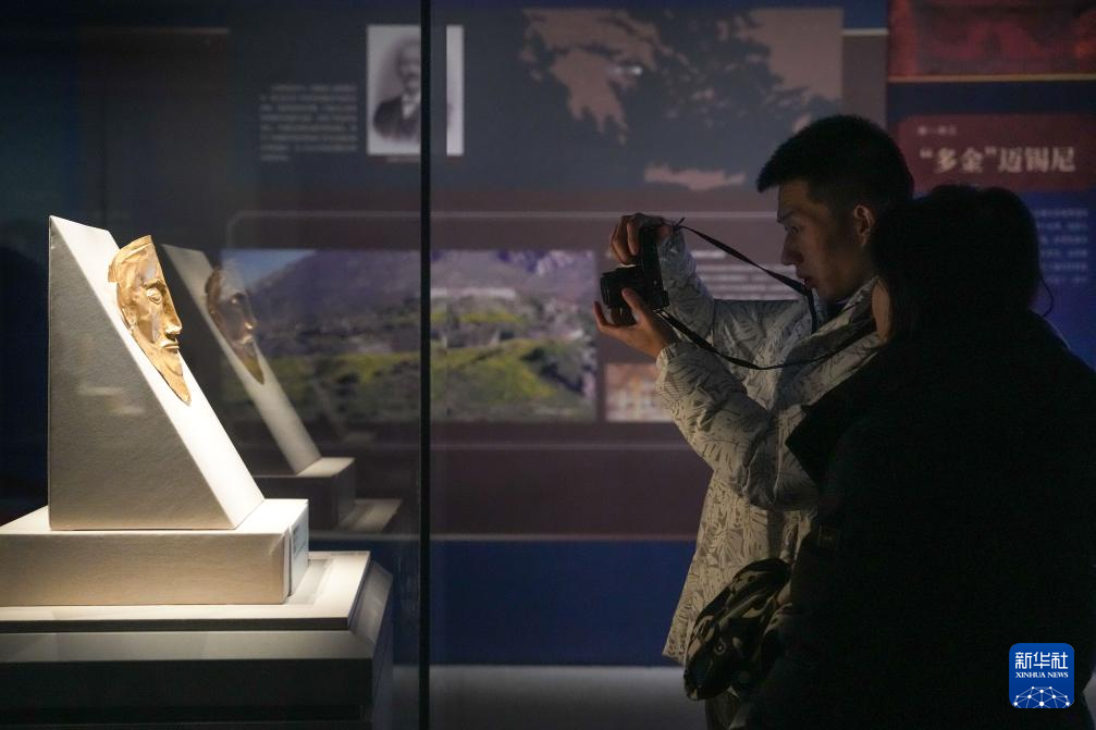 1月3日,一名观众在湖南博物院参观“神话国度 璀璨爱琴海——古希腊文明史诗”展。新华社记者 薛宇舸 摄