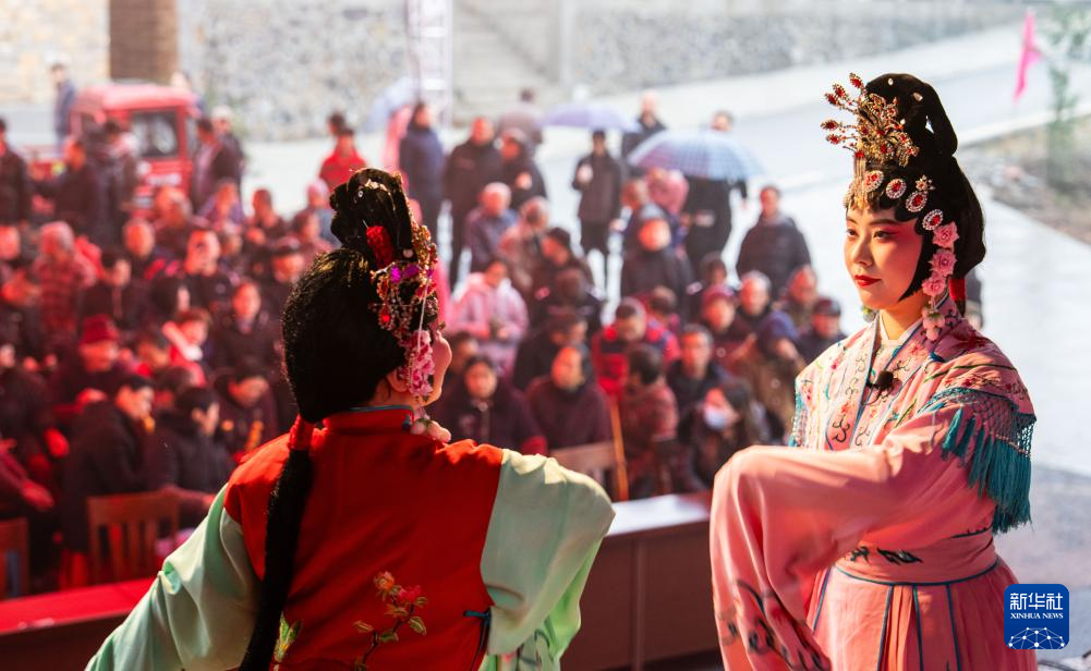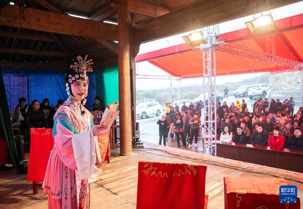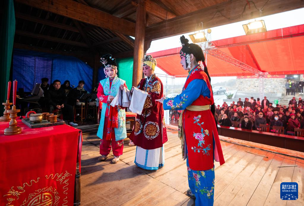 1月15日,演员在伊塘镇长木塘村表演祁剧《孟丽君》。新华社记者 陈思汗 摄