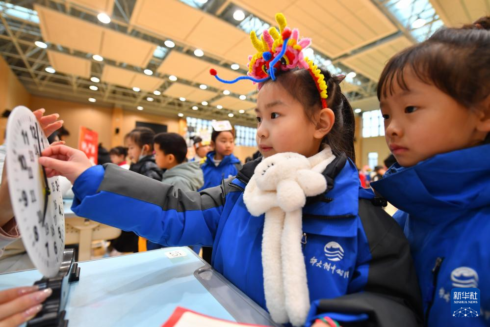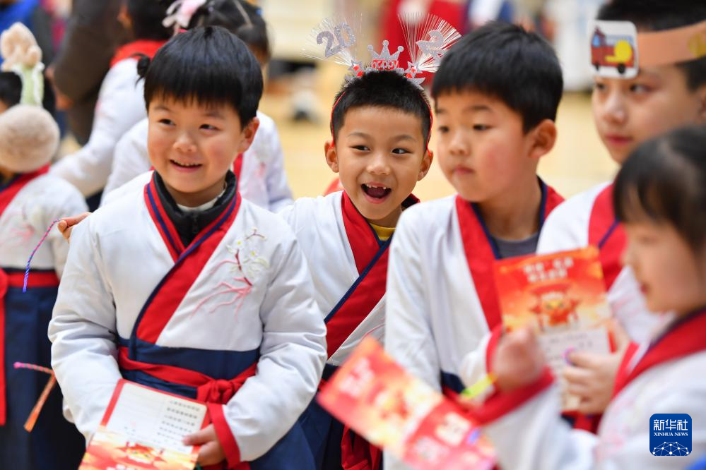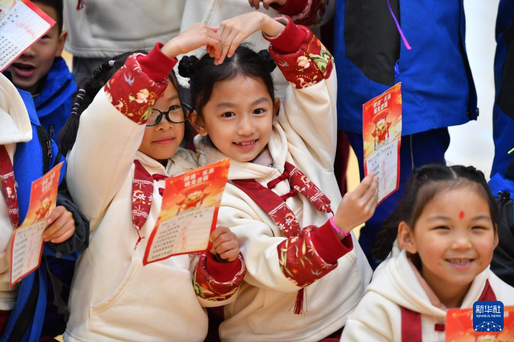 1月18日,在长沙市天心区的湖南师大附中双语实验学校,一年级学生在趣味闯关活动中展示自己的闯关卡片。 新华社记者 陈泽国 摄