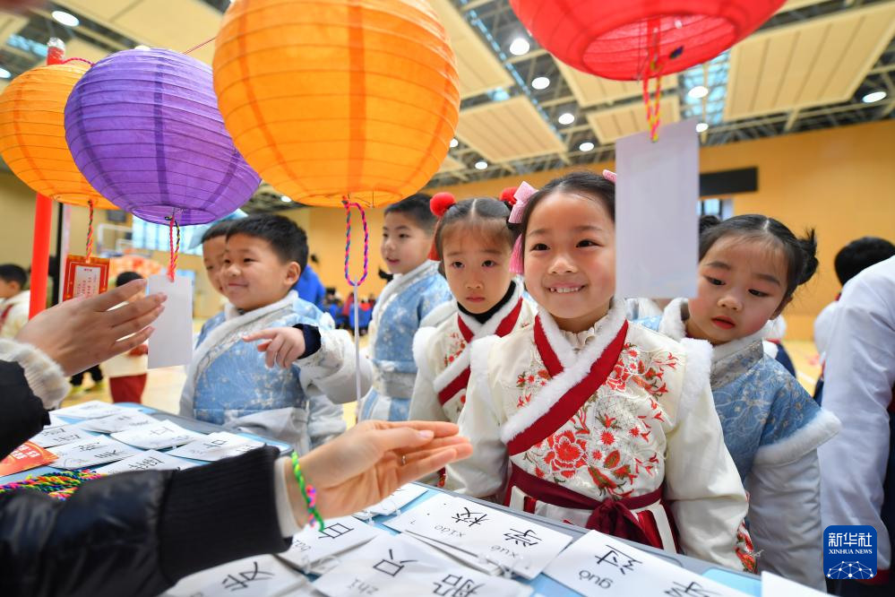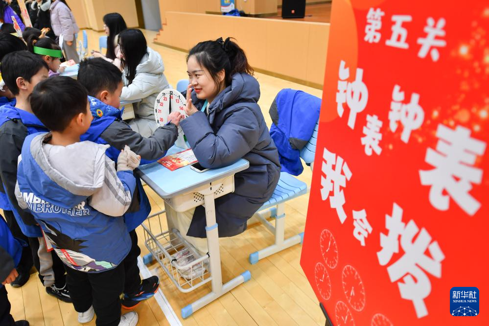 1月18日,在长沙市天心区的湖南师大附中双语实验学校,一年级学生在参加趣味闯关活动。新华社记者 陈泽国 摄