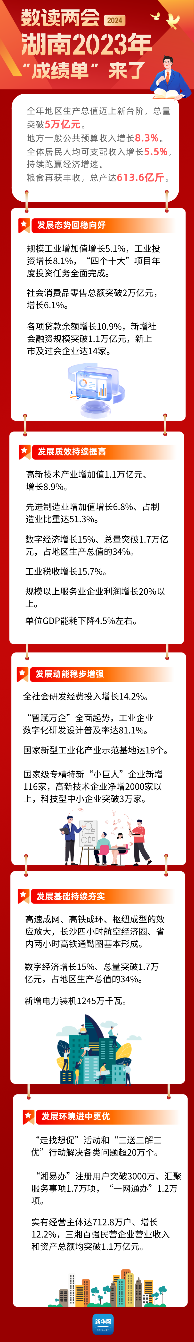 1月24日,湖南省第十四届人民代表大会第二次会议开幕,省长毛伟明代表省人民政府作工作报告。2023年湖南省多措并举稳定经济增长、标志工程引领“三个高地”建设、集成发力强化发展支撑、持之以恒巩固“三农”地位、优势互补促进区域发展、想方设法增进民生福祉、有力有效维护社会安定、忠诚担当提高政府效能等八个方面的工作,交出了亮点满满的“成绩单”。