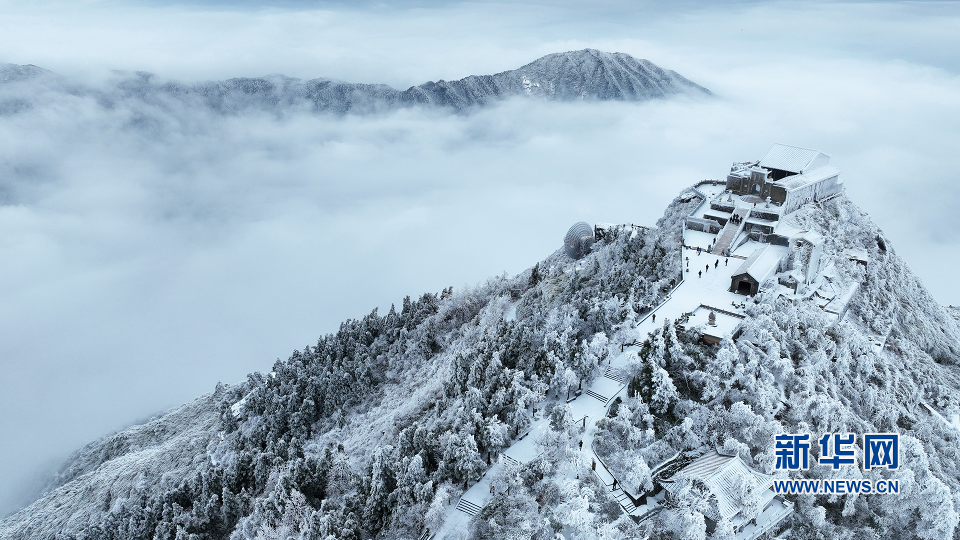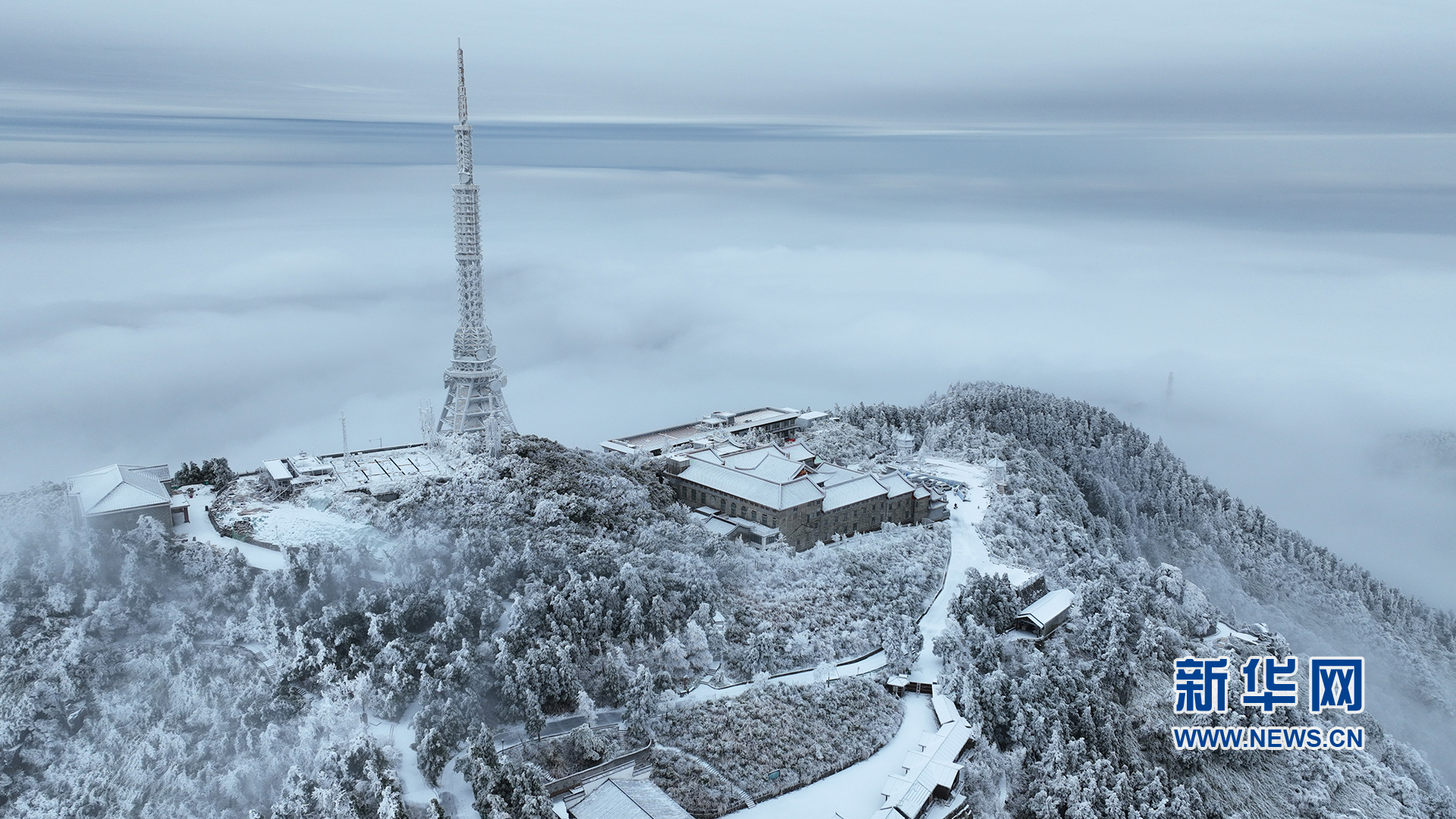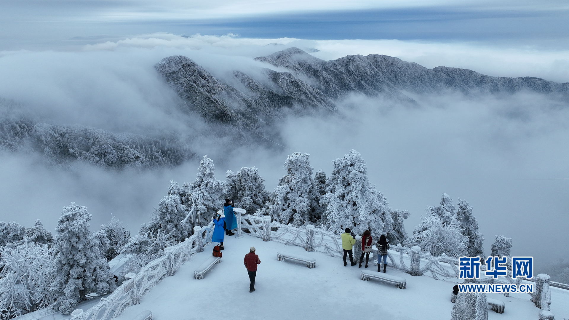 游客踏雪赏山顶云海 新华网发 曹正平摄