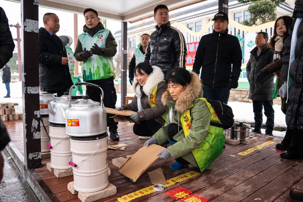 附近居民也纷纷走出家门,都想尽自己的一份力——有人把家中为了过年攒下的百来个土鸡蛋煮熟,免费送到高速上;有人把开水壶送给了带娃的家庭,让孩子能喝上热牛奶;有居民为被困乘客煮上了一碗热腾腾的面……