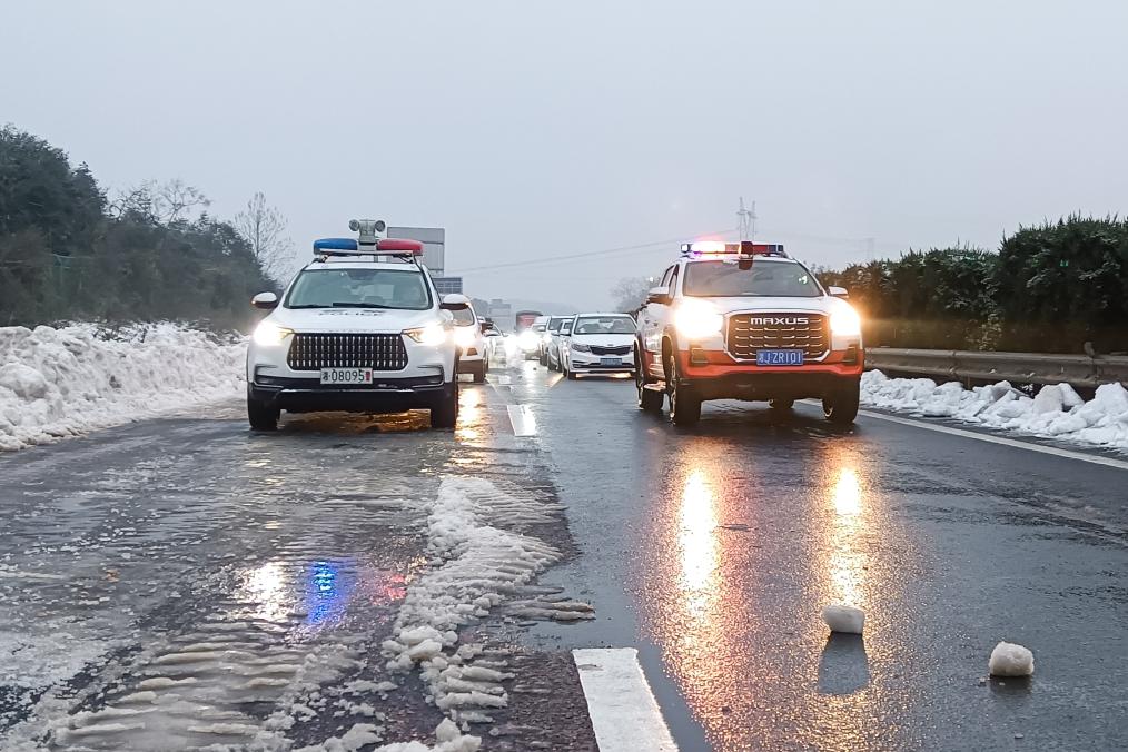 “我们正在进行压速带道,平安才是最近的回家路。”在怀化、湘西等地高速,传来湖南高速警察的温馨提示,警车正进行压道牵引。连日来,为了保障道路通行安全,湖南高速警察全警上路,联合应急、路政、施救等部门采取滚刷式吹雪车、铲雪车24小时作业、撒盐等融雪除冰方式,最大限度保障通行安全。