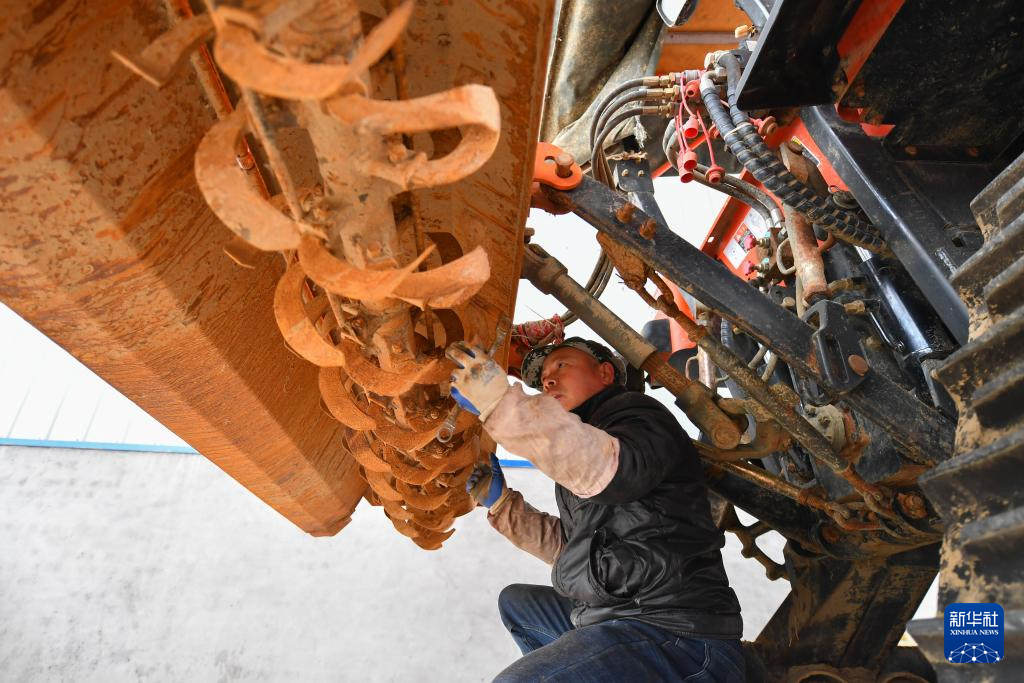 2月25日,在湖南省益阳市赫山区农田谋士水稻专业合作社,工作人员在检修农机。新华社记者 陈泽国 摄