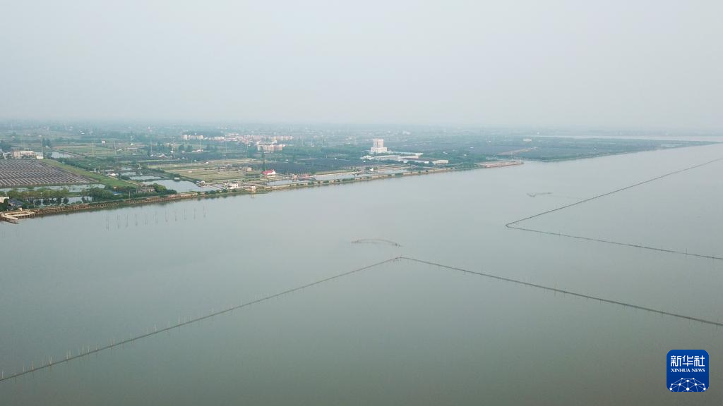 这是2023年4月20日拍摄的大通湖,防护网内种植了大量水草(无人机照片)。