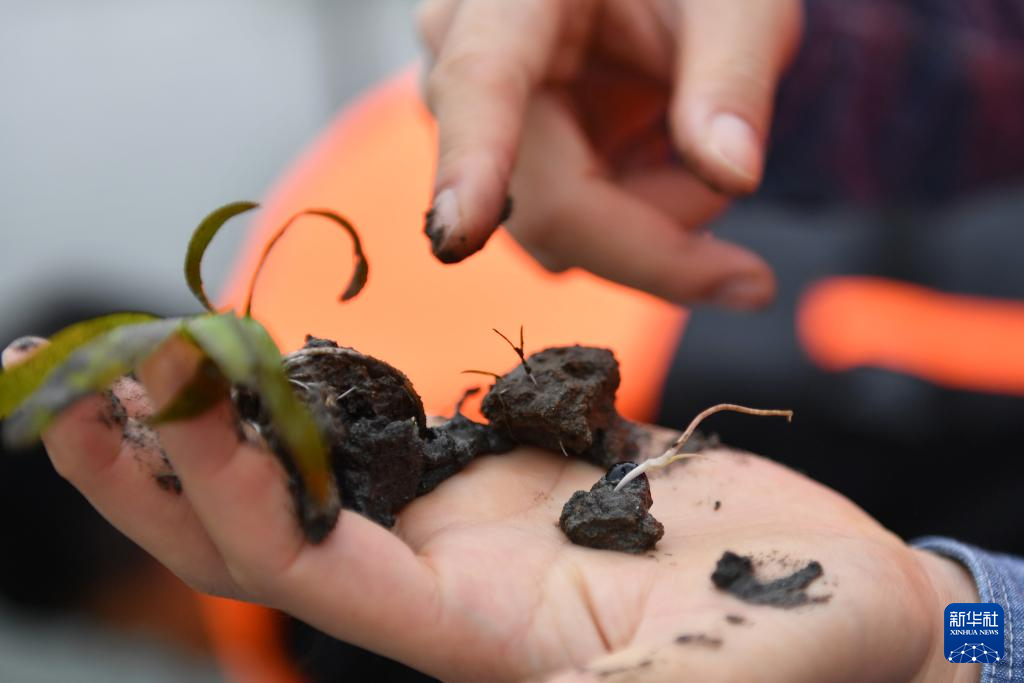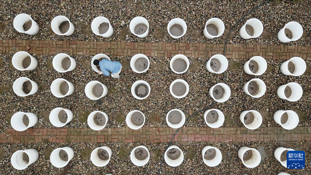 4月11日,李杨在大通湖工作站内清理从大通湖提取的底泥(无人机照片)。