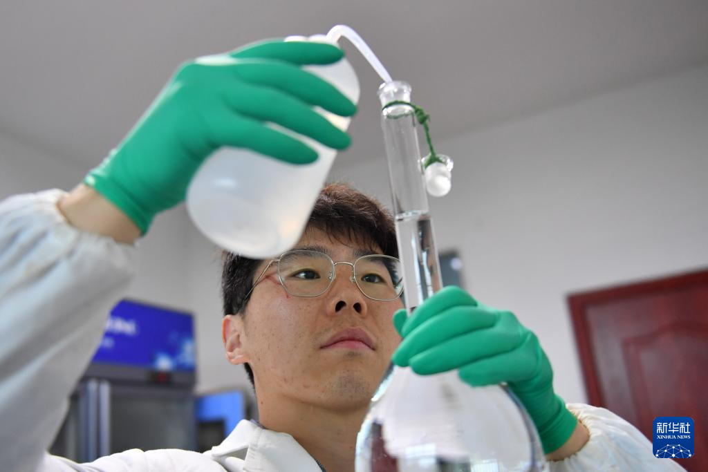 4月11日,李杨在大通湖工作站实验室内调配试剂。