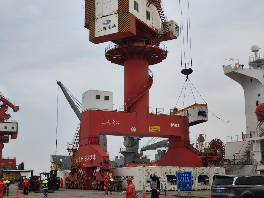 3月26日,装载着佳沛奇异果的“科槐号”散装水果冷藏货船抵达中国(上海)自由贸易试验区临港新片区南港码头。新华社记者杨有宗 摄