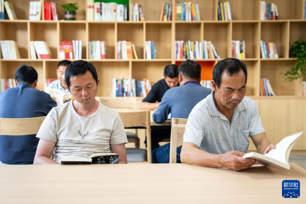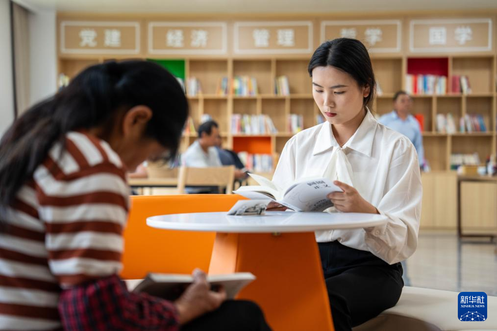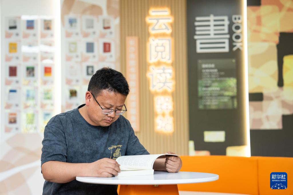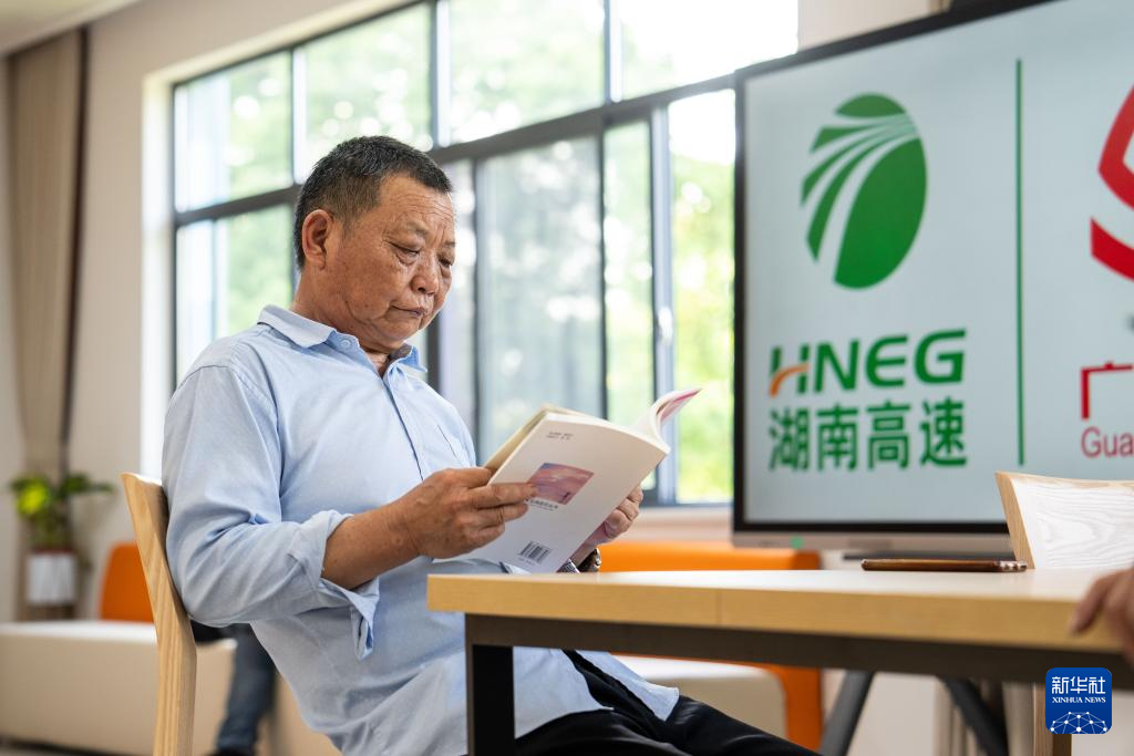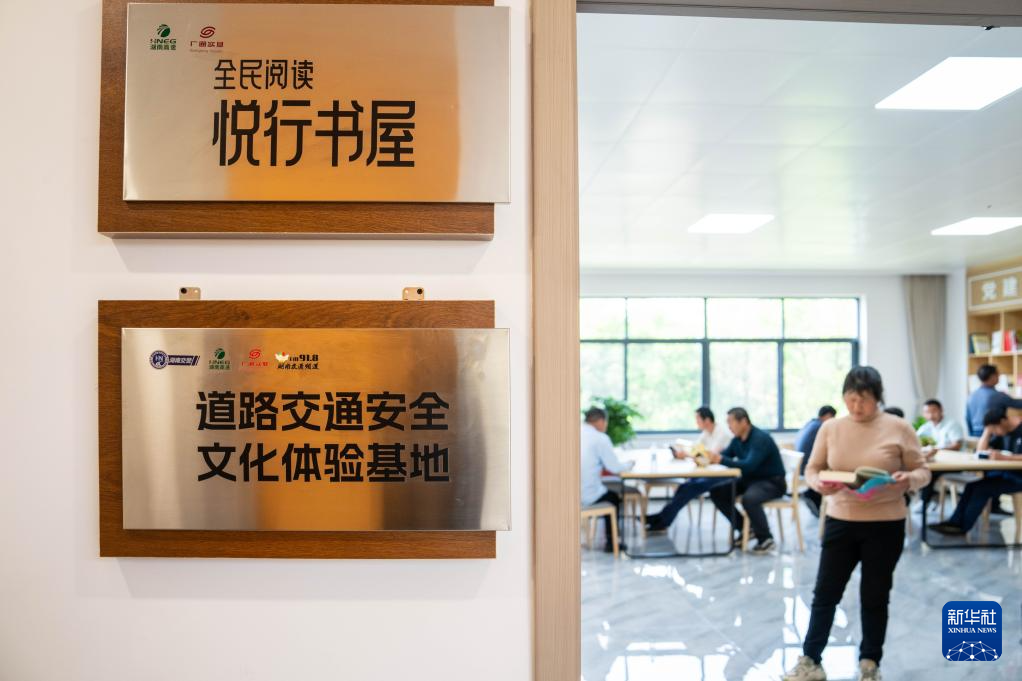 4月23日,读者在京港澳高速平江服务区“悦行书屋”阅读。