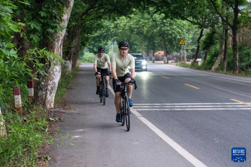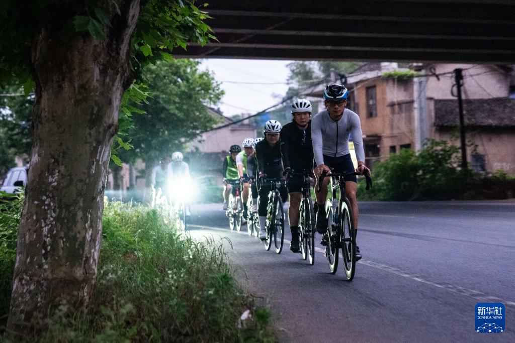 5月18日,骑行爱好者从宁乡市出发(无人机照片)。