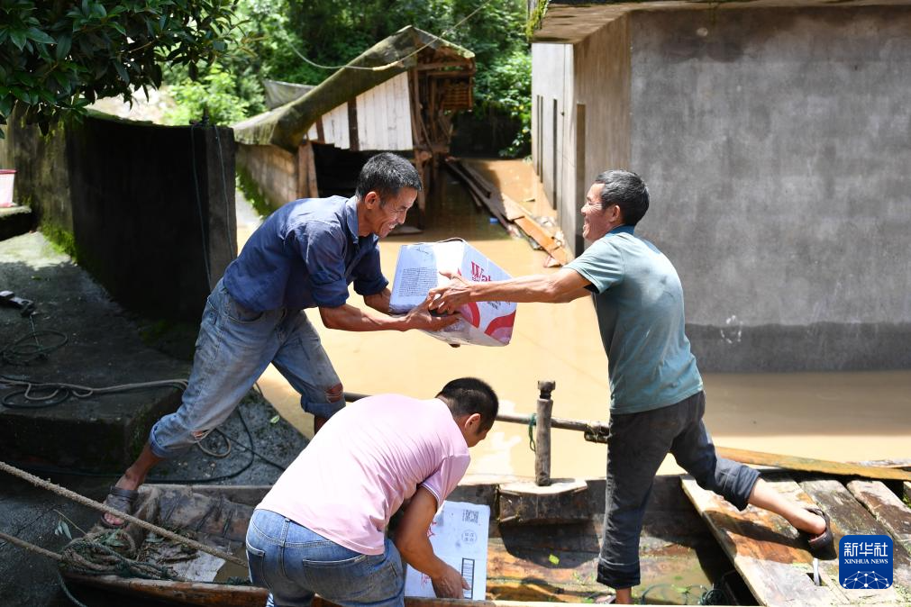 7月2日,辰溪县辰阳镇陆家湾村村民在搬运生活物资。
