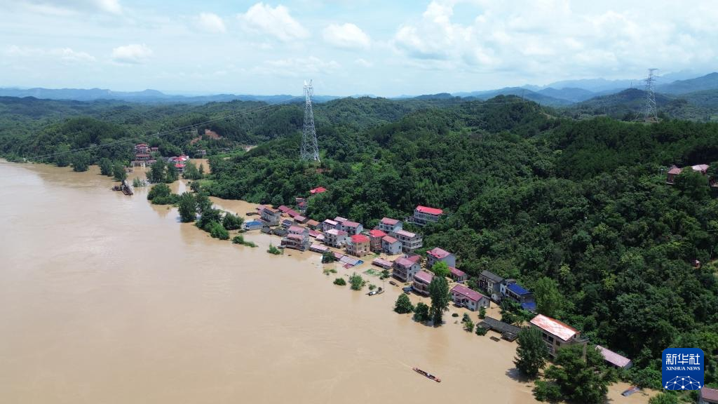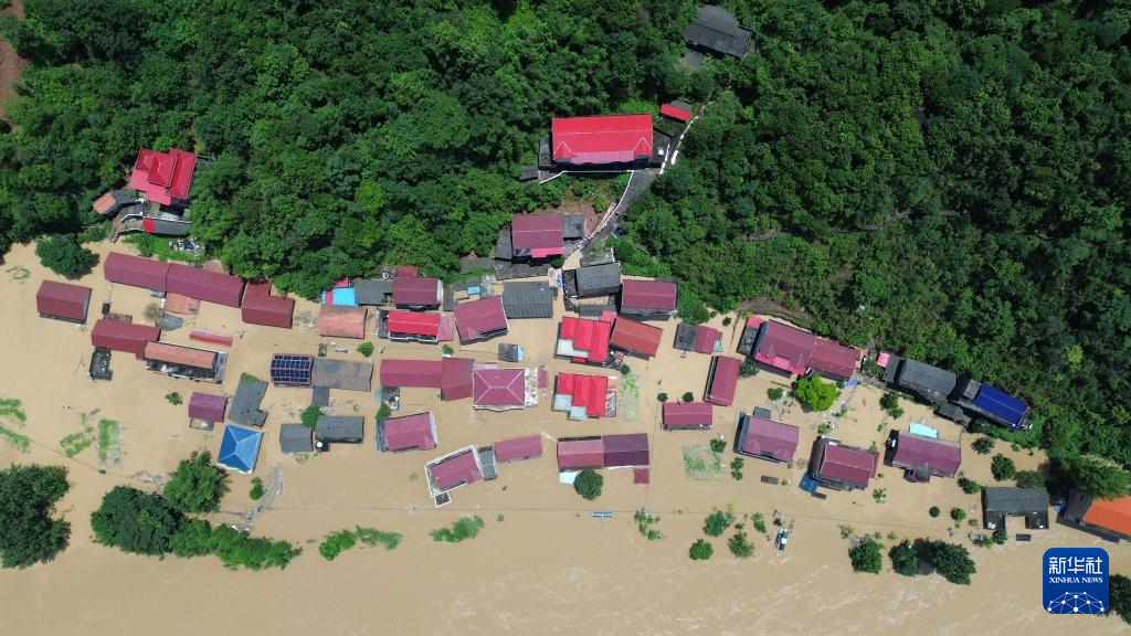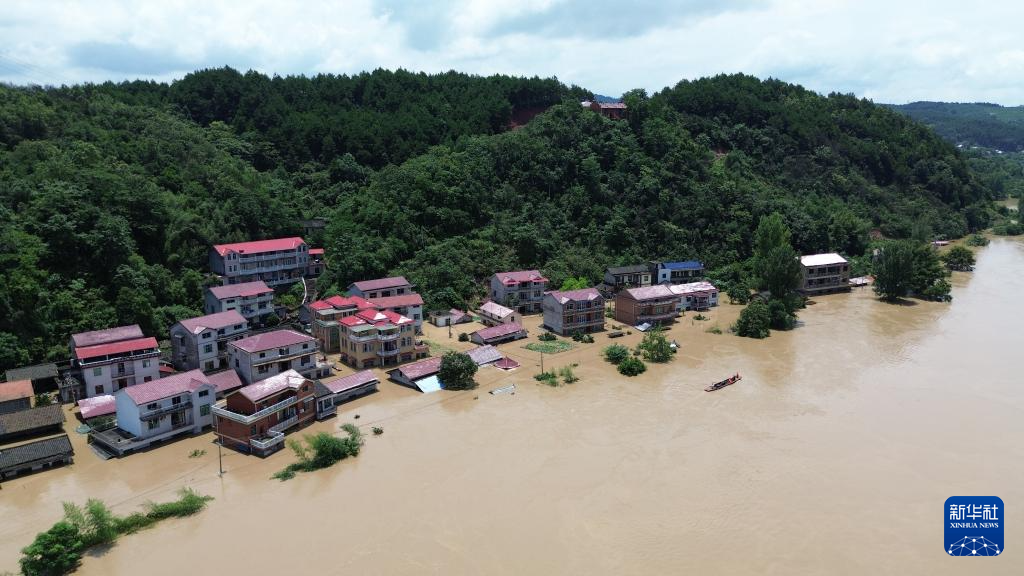 这是被洪水围困的辰溪县辰阳镇陆家湾村(无人机照片,7月2日摄)。