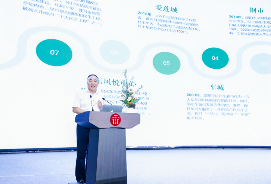 大汉集团董事长、大汉国际工匠院创始人傅胜龙作《美丽乡村 湘贤共建》主题演讲。主办方供图