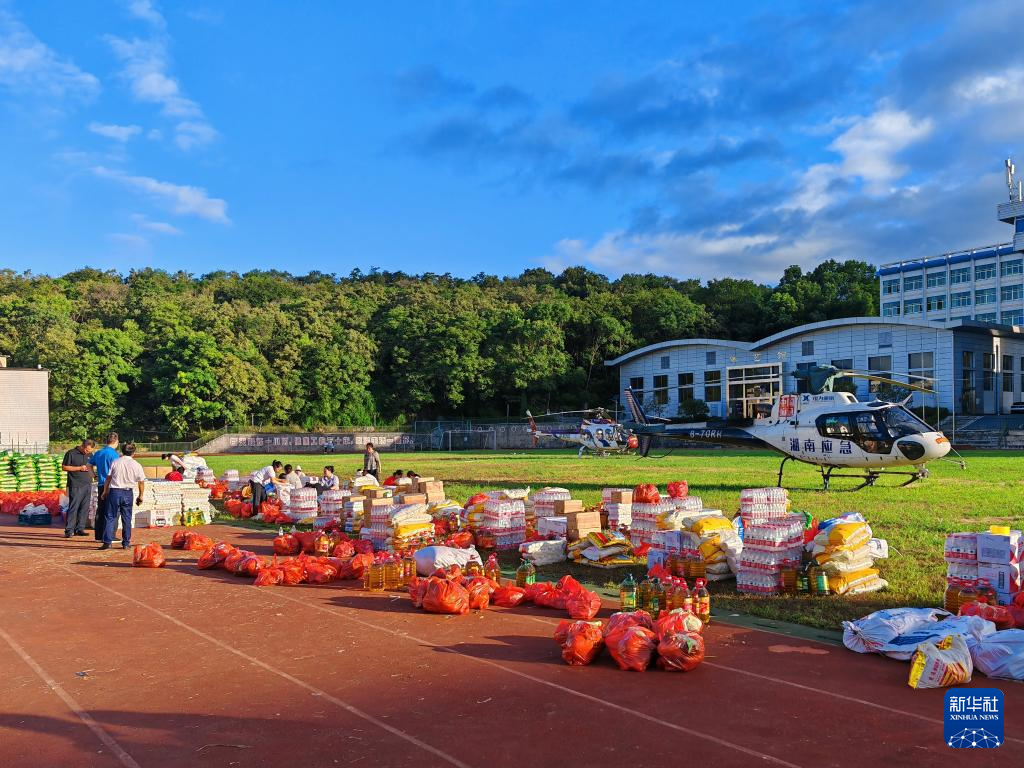 “快!直升机来了,准备搬运物资!”7月30日一大早,在湖南省资兴市第一中学,志愿者们听到指令后冲到操场。在螺旋桨轰鸣声中,他们迅速将摆放在草坪上的矿泉水、大米、食用油等物资搬运上直升机。