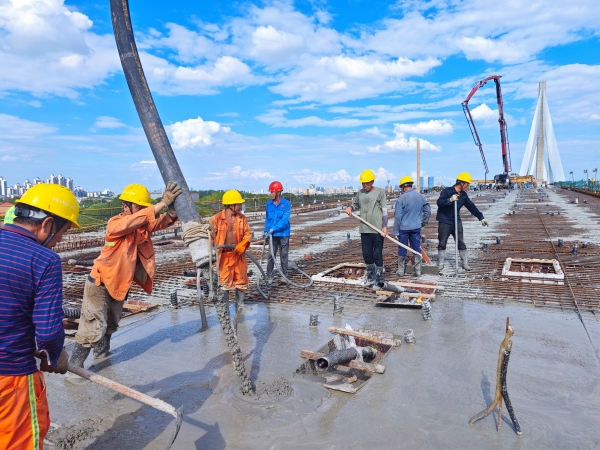 2024年8月3日,杨梅洲大桥河西引桥完成浇筑,全桥贯通。