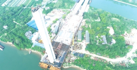 2021年12月23日,杨梅洲大桥河西主塔浇筑完成。