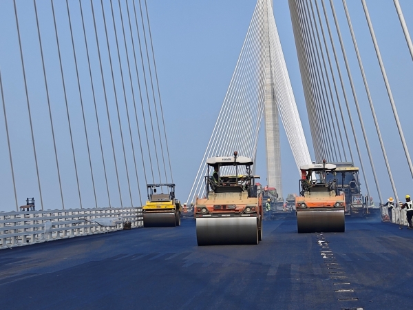 2024年9月8日,杨梅洲大桥项目全线沥青摊铺完成。